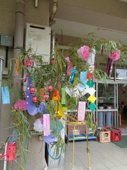 最後の写真は幼稚園の教職員の短冊を飾った笹です