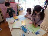 年少組の一斉活動 「ひなまつり」の音楽を聞きながら ひな人形つくりに取り組んで...
