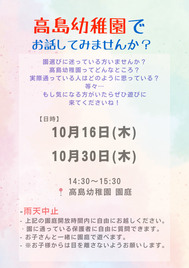 保護者の皆様が高島幼稚園のありのままの様子をお話しする機会を作ってくださいました。
